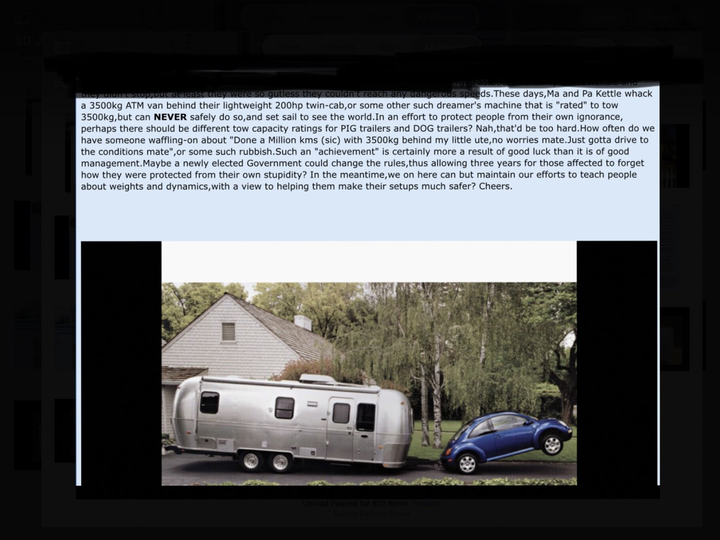 Fair comment Ralph. Both you and I would know that this vehicle is overloaded to the point of stupidity but in my travels I see this sort of dreamers' machine setup on a daily basis. Always I get the same rubbish. "Tows great Mate. Just gotta drive to the conditions". Yeah, right. Cheers