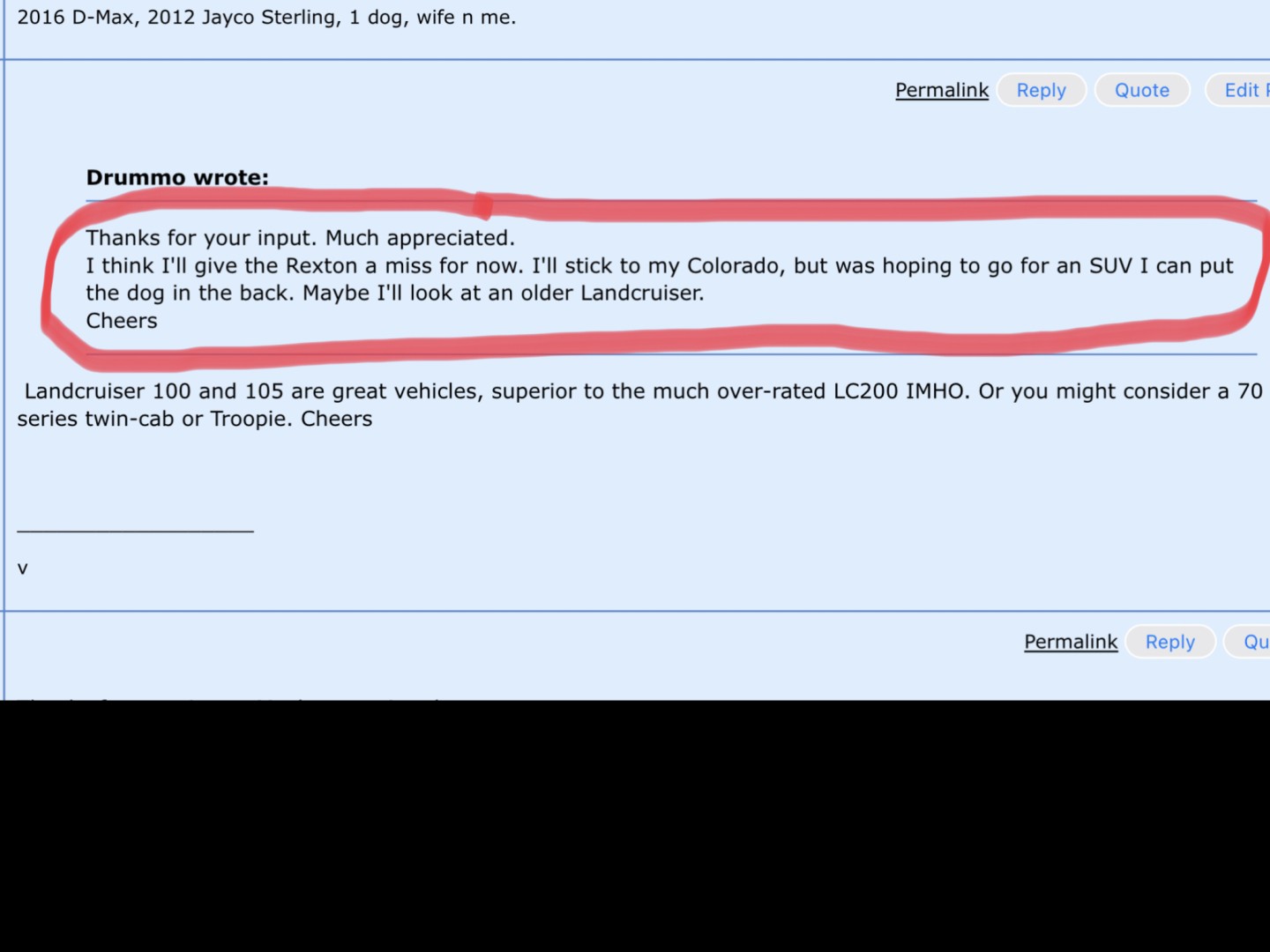 To refresh your memory I've included a screen shot where you accepted our advice and said you'd "Give the Rexton a miss for now", which would have been a wise decision. Why the renewed interest? Smooth talking salesman? "Advice" from people with a vested interest? "Advice" from people who don't understand weights?