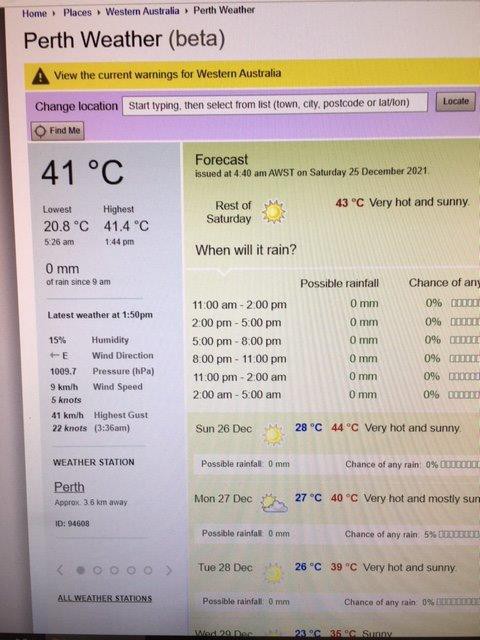Merry Bloody Christmas in Perth........41 degrees and rising, 44 forecast for tomorrow.