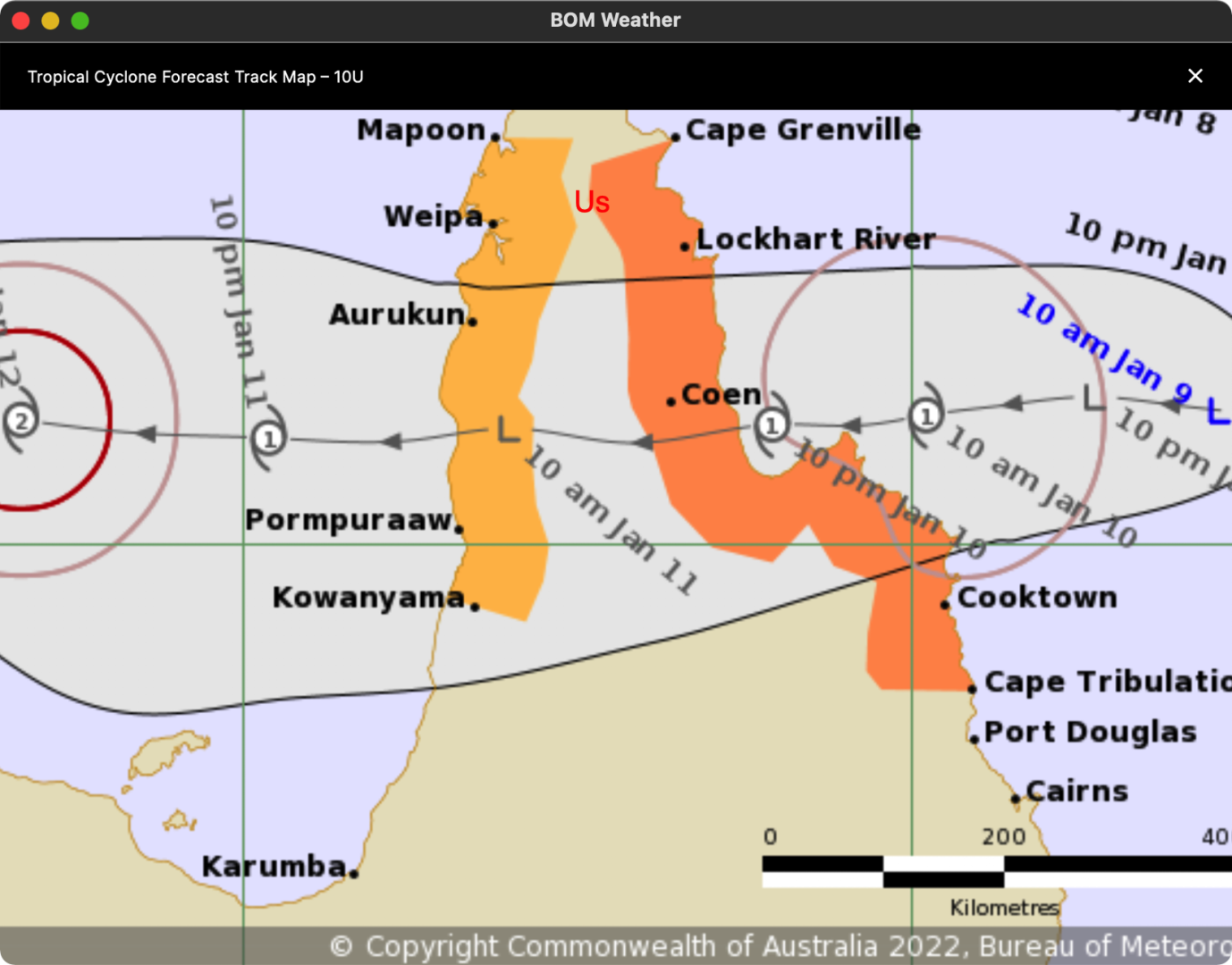 However the forecast has now reduced that figure to a bit over 100mm if the Cyclone crosses further south (as in the path shown in this latest chart).