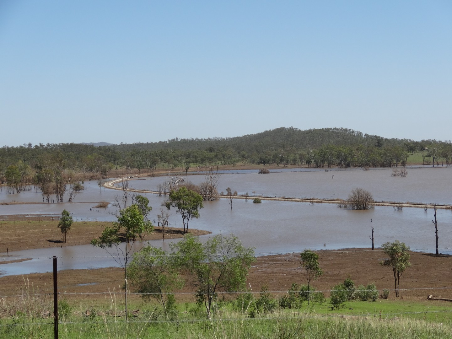 I was there in Oct. , and the water was 500m away. Got an 80cm barra, and a few redclaw. Lovely spot. Go in from Caliope, and back that way.Good facilys in Caliope. Many Peaks road NOT recomended for caravns or motorhomes. Bill