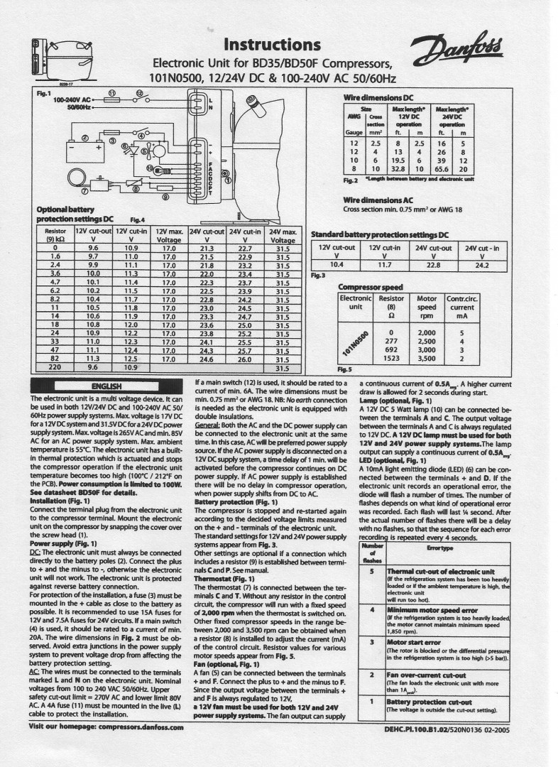 Probably getting past repair, as I suspect the unit is faulty in the change over switching from the 240V to 12V in the unit. Will post the Danfoss instruction sheet & a pic of the switching FETs & Diodes.