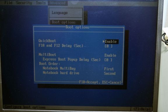 You've already got it highlighted on the cd,cdw drive and the other one would be multi bay, which is first in the boot sequence anyway. Can't see what your problem is, they are right in front of your eyes.