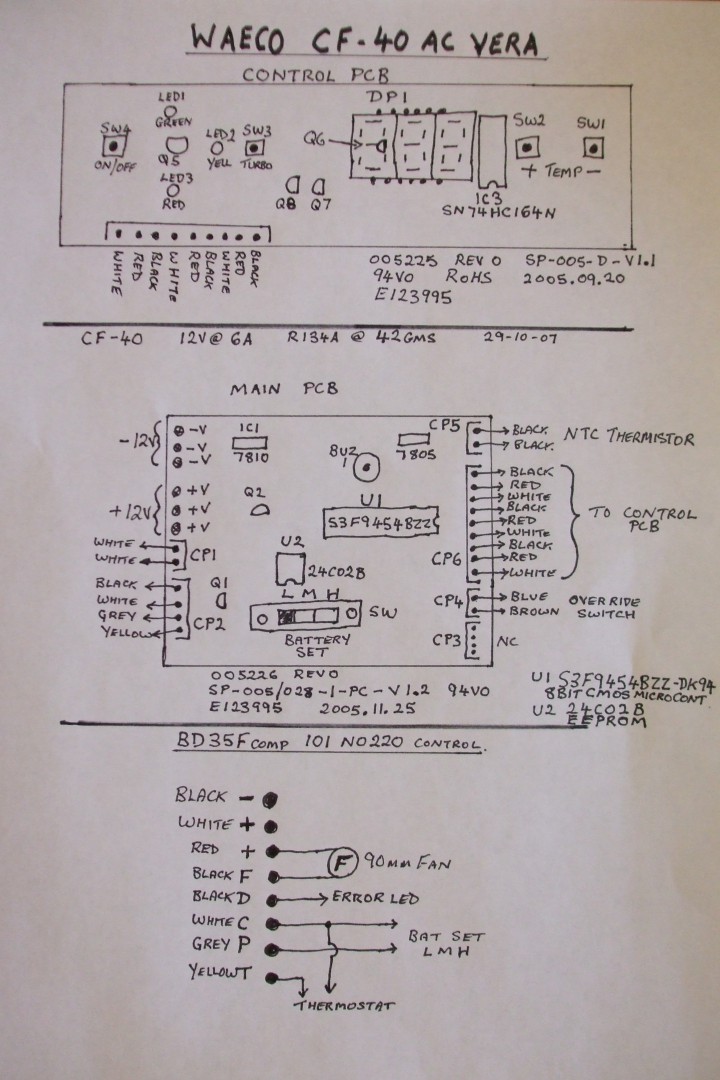 If it is of any help (perhaps in future), here is a hand drawn circuit diagram for a Waeco CDF-40 (was it drawn by someone in this forum?):