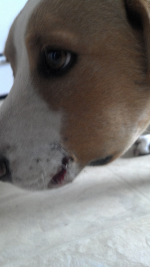 This is a picture of a Dog belonging to a friend in Colorado. It was bitten by a rattler and you can see by the swelling that it was not a dry bite. They have a lot of rattlers on their property and their dogs have been saved several times by shocking. When there is swelling the pain from a shock is not as noticeable I have found... it still hurts though
