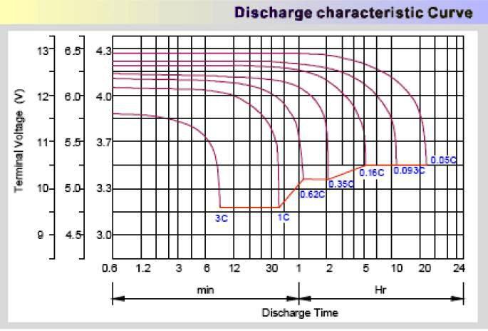 To decode the information in the chart, 100 amps drawn from a 100Ah battery is shown as the 1C discharge curve, the normal C20 discharge curve that the 100Ah can be drawn out is the 0.05C discharge curve. As you can see, the 0.05C (C20 curve) will hit the 10.5v line after 20 hrs (C20) but the 1C curve hits the 10.5v line after only 30 mins. This is the effect of Peukert's Law on lead acid batteries.