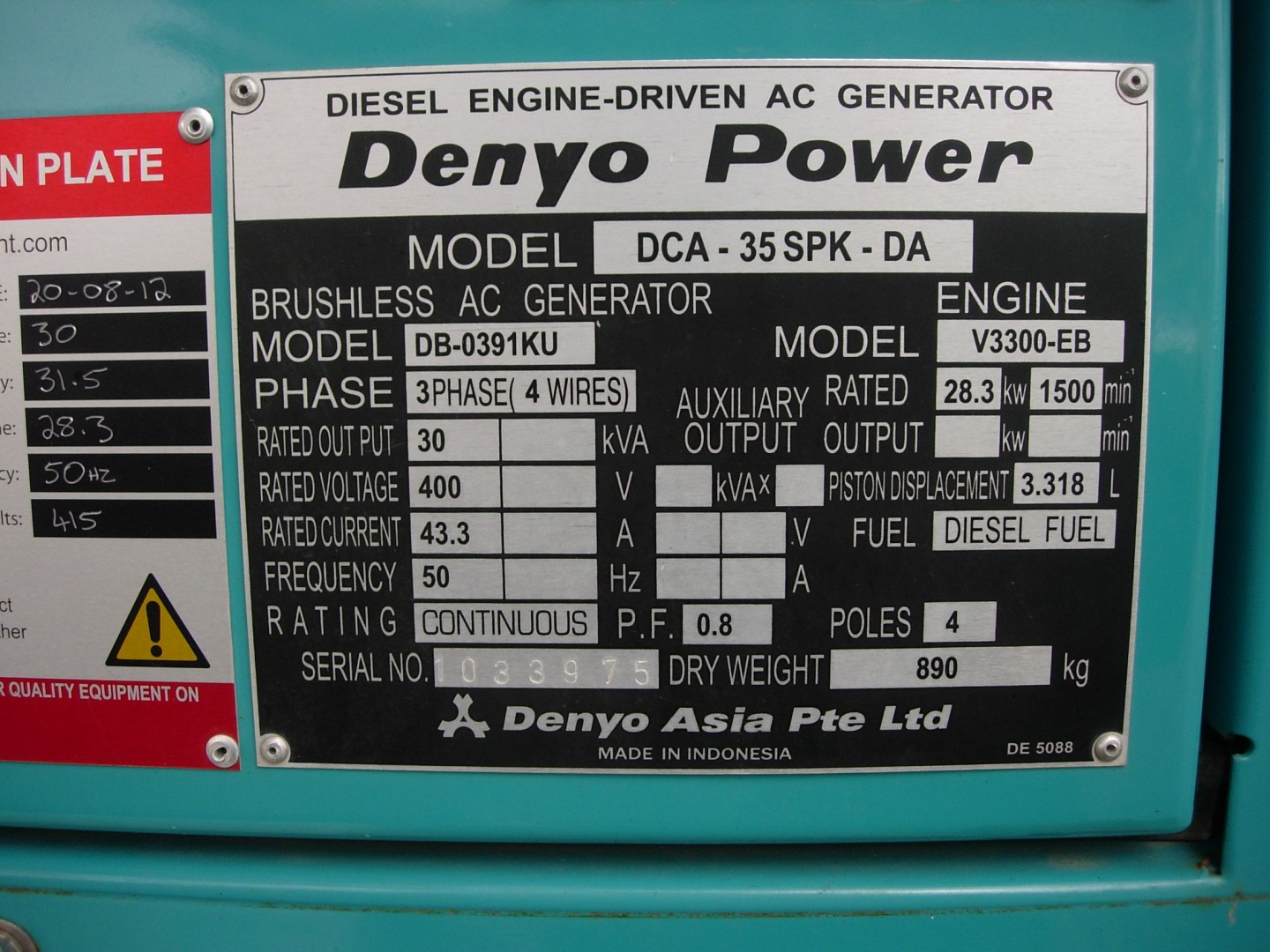 He runs the big one during the day to run the whole hotel, the smaller one is only used when the kitchen is open for cooking, when the night rate comes into effect he shuts down the gender. Because his power consumption had gone down the power company offered him off peak rate all weekend so the gensets dont run on the weekends.
