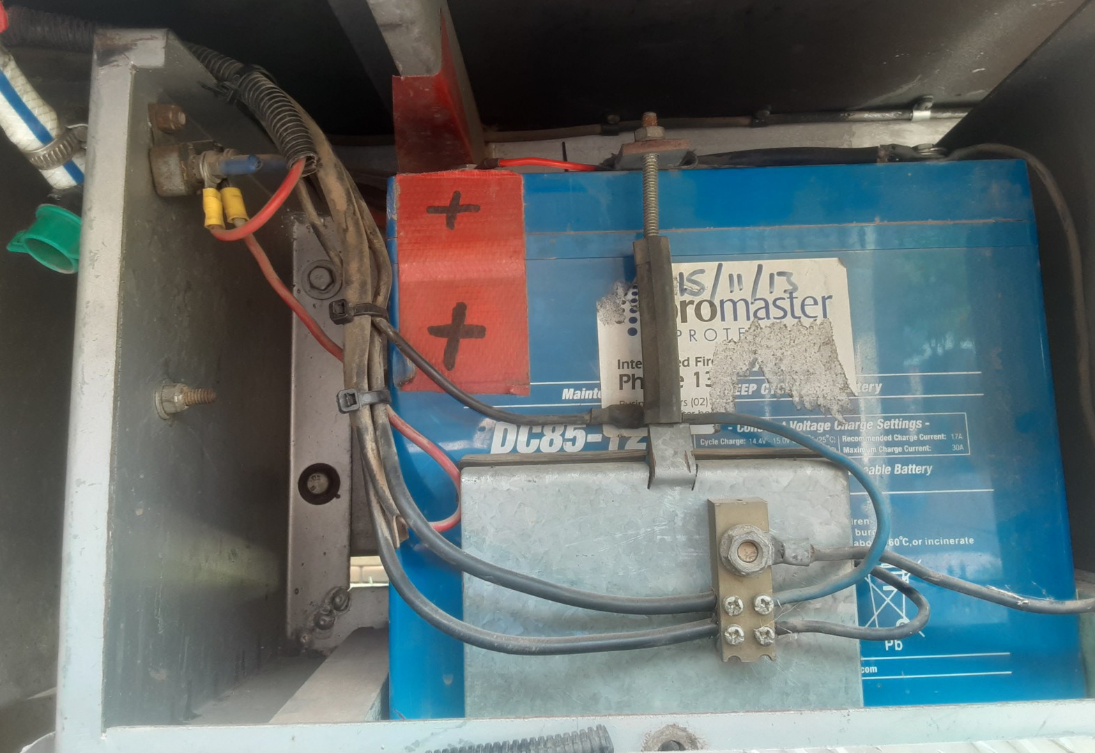 Next a secondhand 2013 85 amp blue battery was added to compliment the orignal 100 amp battery.