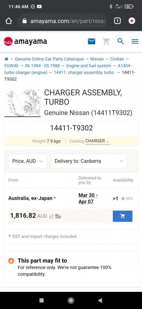 I know the original part number and can get that turbo Nissan (china and get it sent here) for $2500. Called Nissan in ACT they checked part number and quoted 3k from china import too. The turbo glide guy in Wollongong said he charges about $800 for what he puts together or $1300 for Garret one.