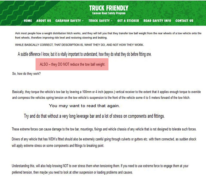 Hi Stephen. Despite me spending many, many hours on the forum explaining the workings of a WDH, along with relevant screenshots from the Hayman Reese website and advice on how to access relevant videos, combined with results from my own weighings on a registered weighbridge, still it seems that some don't want to know. It is an INDESPUTABLE fact that a WDH DOES NOT CHANGE TOWBALL WEIGHT. Never has. Never will. No matter how some may waffle-on, and come up with their own half-baked theories there is no disputing what Hayman Reese says, nor the findings by Collyn Rivers who has 60 years experience with weights and dynamics. It is very easy to access his books online, as it also is easy to access the HR website. Since I joined this forum many have come to understand that when it comes to weights I do know what I'm talking about, but still there seem to be some who learn slowly or who just don't want to know. C'est la vie. Again I will suggest that you Google John Cadogan "Weight distribution and load levelling hitches for heavy towing" and make an effort to actively LISTEN to the lesson. If you then still do not understand it appears that there is little that can be done to help you. Cheers