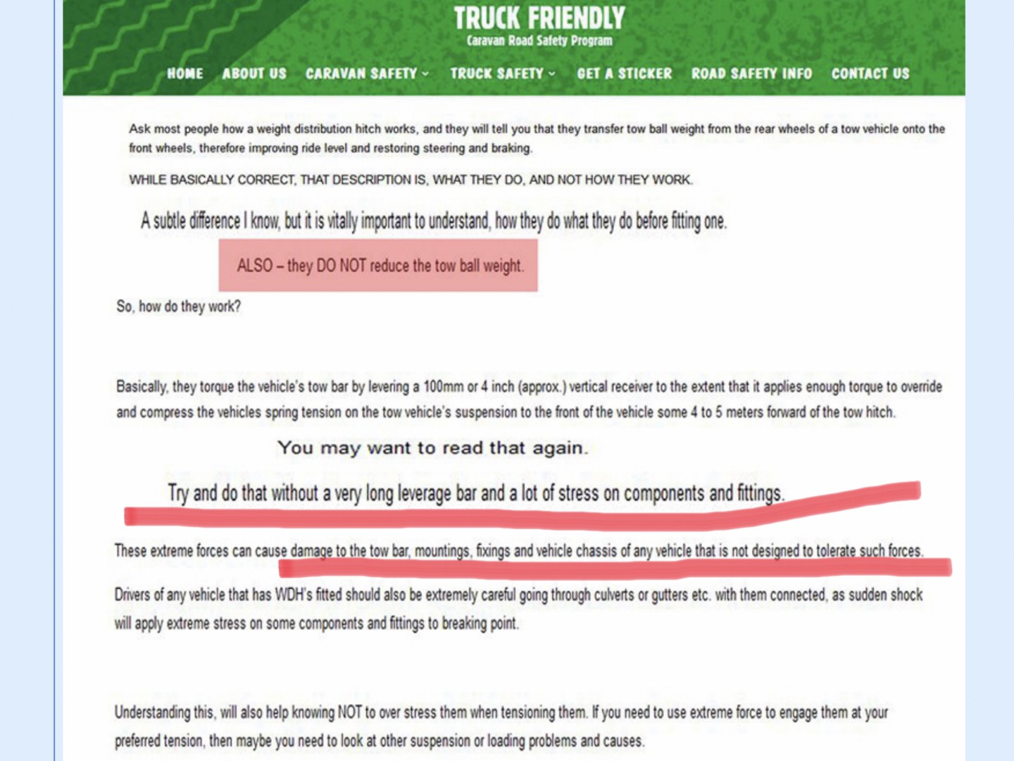 Plain Truth, I'm not sure if that was intended to support my view or Yobarr's. It did raise the point that I was making about being vitally important to understand how they work, and that how they work is different from what they do. I agree 100% that a WDH does not reduce towball weight. It can't because it can only apply extra load, never less than the coupling would otherwise apply.