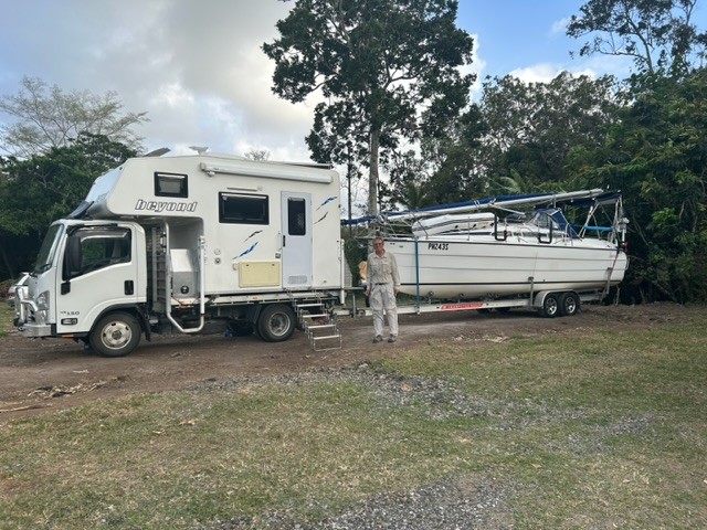 This time a friendly Whitsunday Yacht Club member is storing our slide on camper, truck and trailer on his hobby farm for the usual local currency. ( beer)