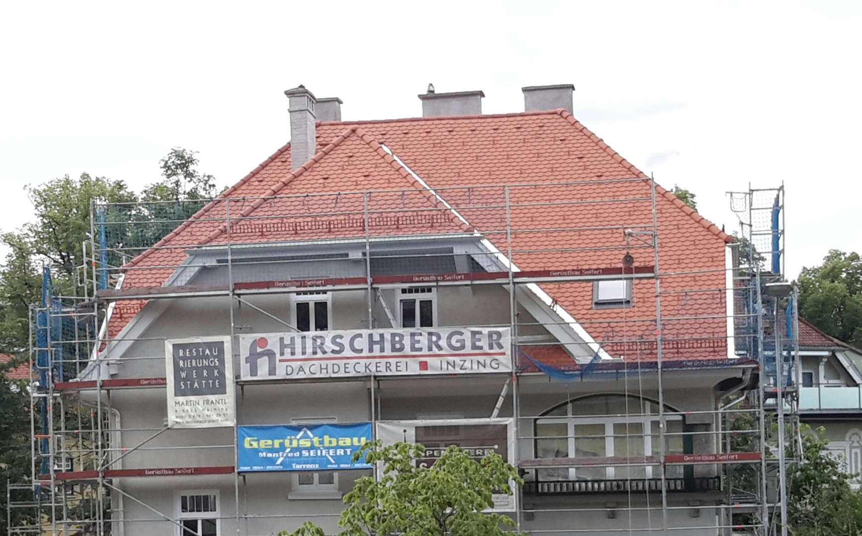 2 pic is a home being renovated across the road, includind a new roof. Just behind the scaffolding above the gutter, it looks like a ladder laying flat and then there is pieces of metal sticking up, that is all to do with stopping the snow falling of the roof and becoming a health hazard.