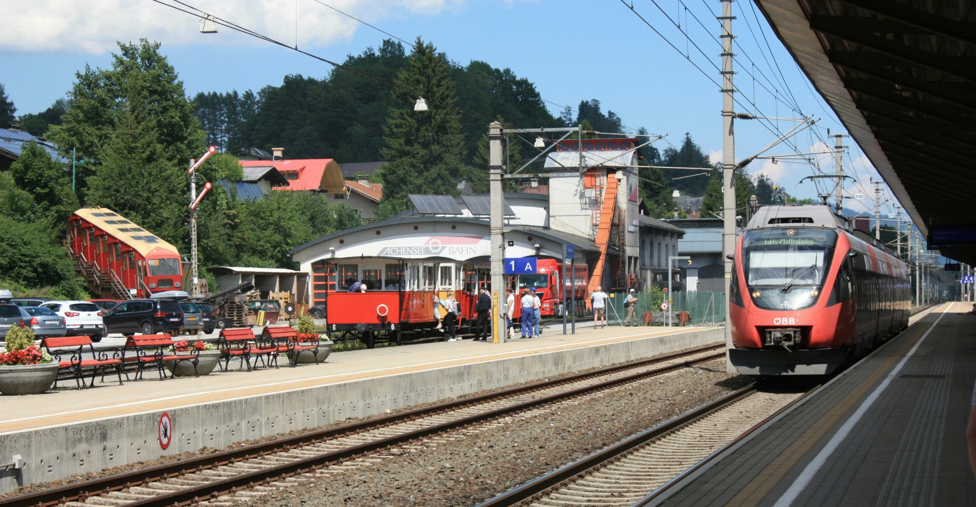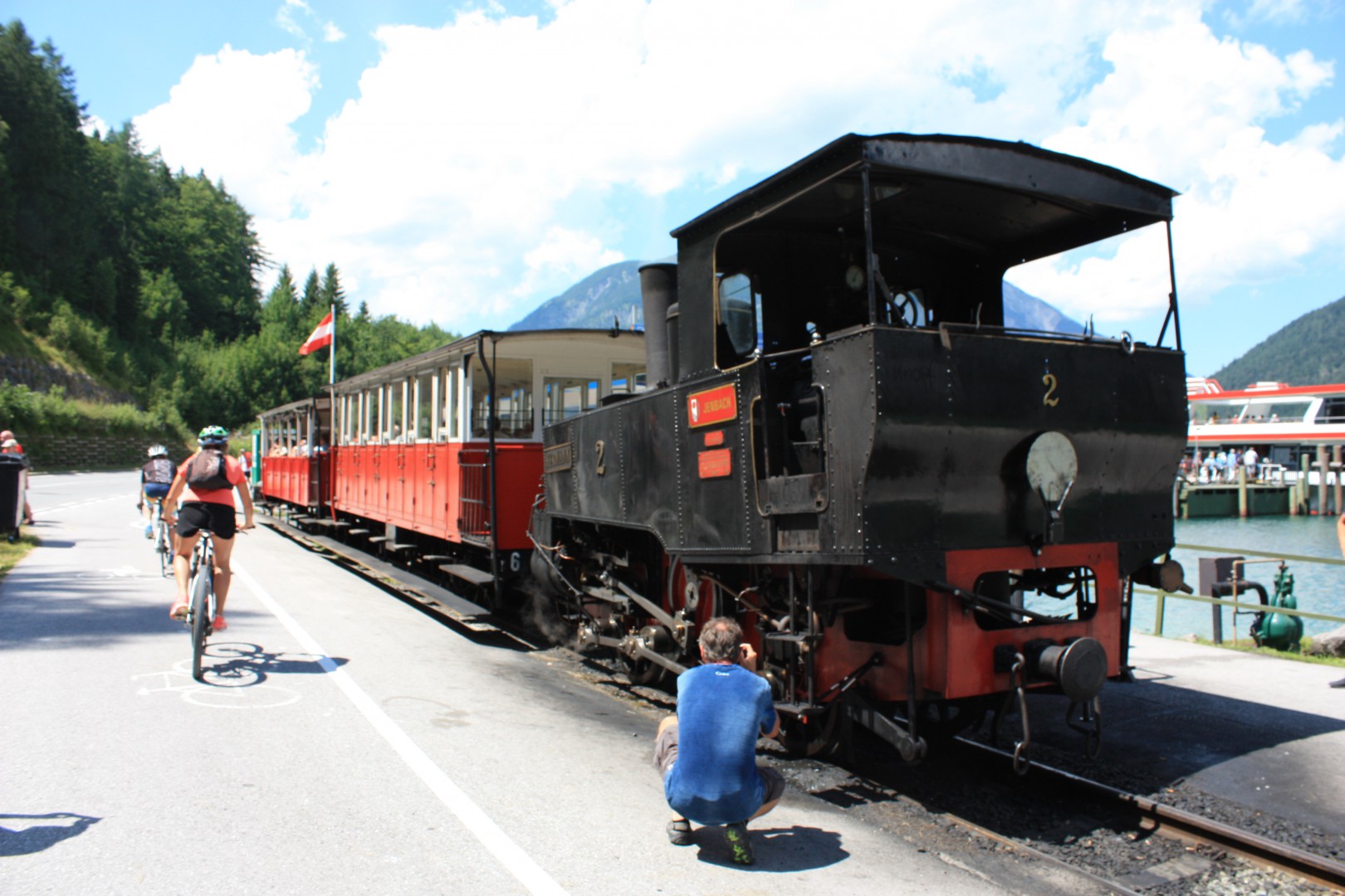 We walked a very short walk from home to catch a tram into the Central Bahnof, from there we enjoyed a 40 minute suburban train ride to Jenbach along the valley floor though farming areas and small villages with the mountains looking over us, very pleasant.