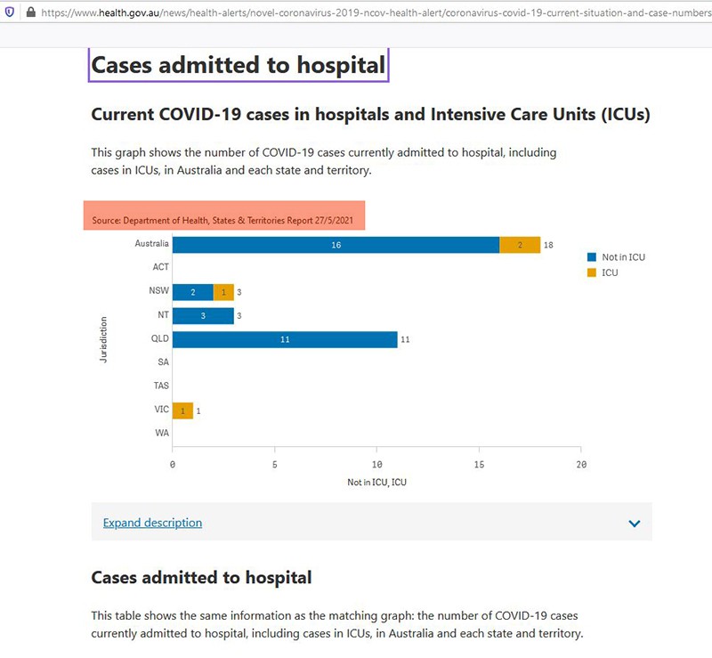 Australia,pop. over 25 million, cases in hospital with covid, 18,of those 2 in ICU.