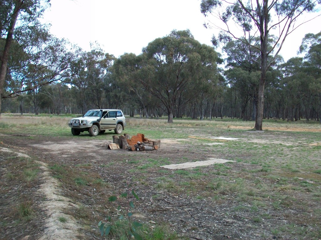 You turn right between pub and petrol station which by the way you can get a fishing license from. Cross over the bridge and travel about 7 ks. Just before the boat ramp, (about 20 metres) turn right into the Gunbower National Park, take the 1st turn left ( the others are a bit damp at the moment but will be dry by November) And drive along a track through some trees to the banks of the Murray River.