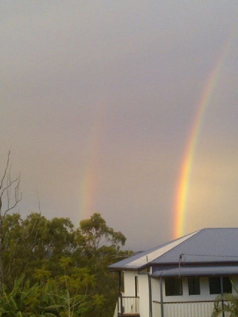 I saw a double rainbow at Mt Crosby yesterday too Jules. Photo was taken on my smartphone, so isn't very clear.