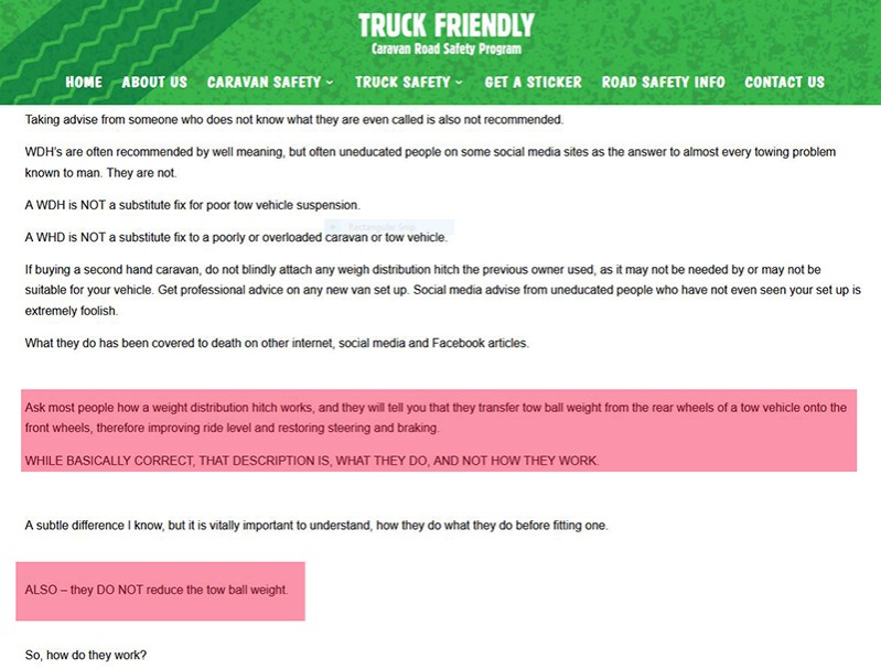 Even his LARGE RED highlighted sentence is incorrect as a WDH doesn't shift ANY weight that is "centered (centred?) on the point where the trailer and vehicle connect". That weight stays the same.