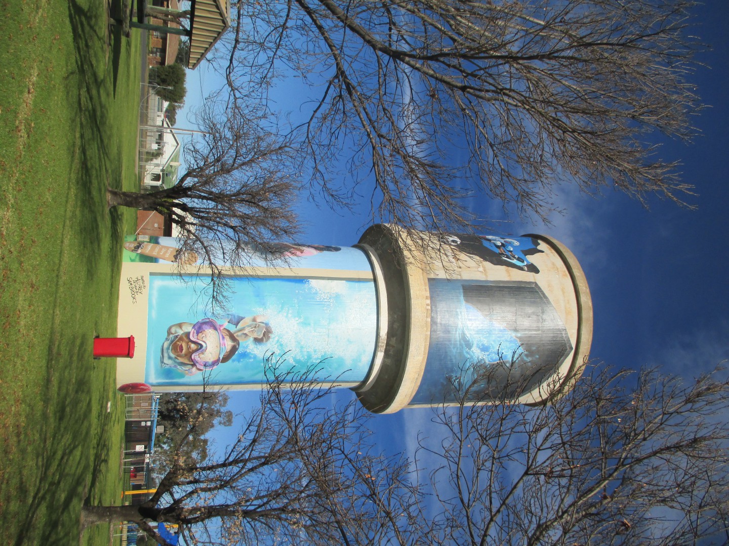 Thanks for that. Haven't been there. Was just going by the clues. Now it's time for me to find a photo. Haven't got a Pick this Place for ages. On which town's water tower would you find this bloke? Cheers.