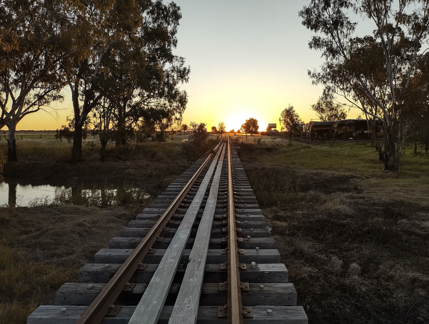 My stab is Meandarra as it has a Military Museum and camping, but the railway line was closed years ago and your photo has good looking tracks. Cheers. PS - I've not been to Quilpie but I looked it up and it has a military history museum.