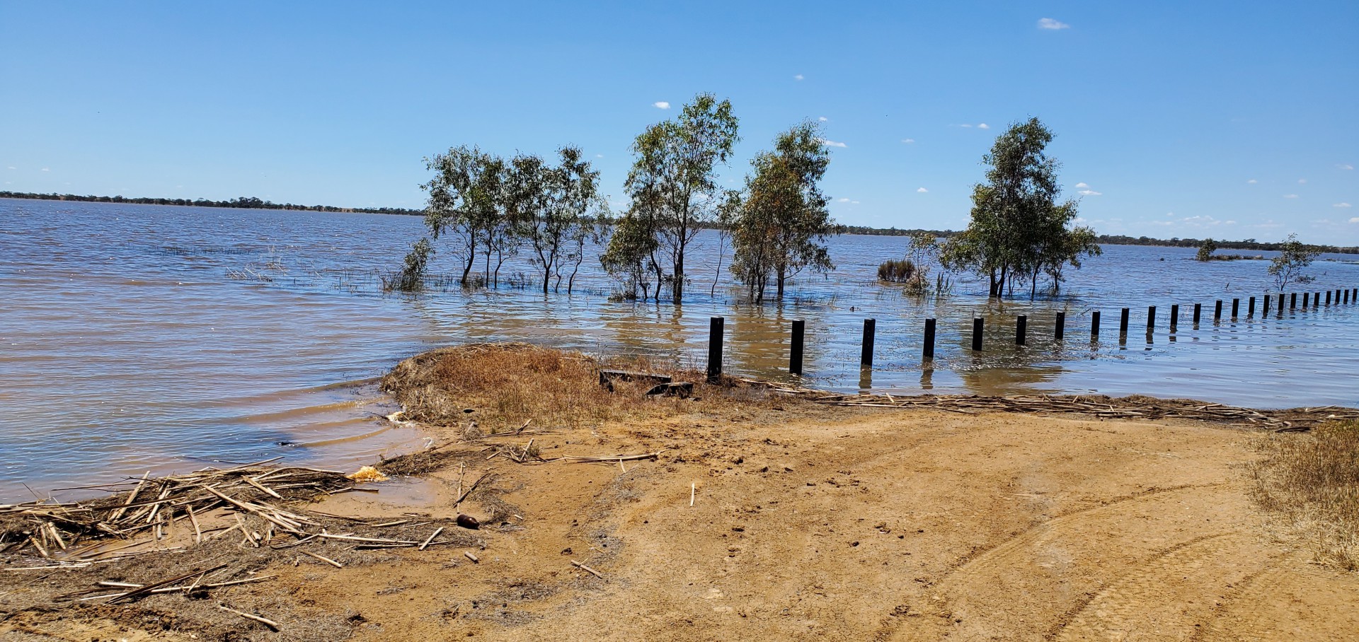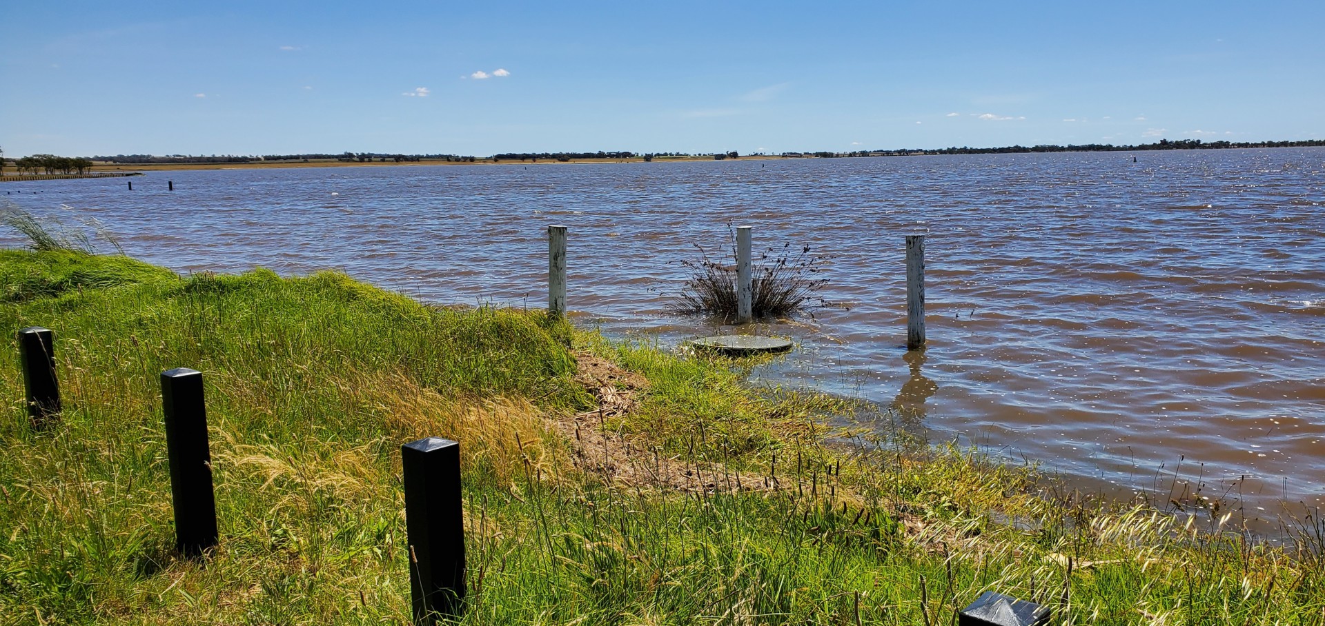 Looking West from the boat ramp... most bollards are in the water.