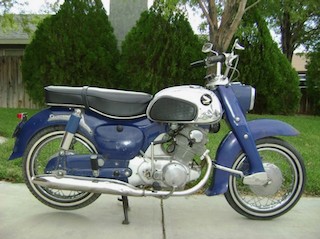 My first Japanese bike was an early 60's Honda CA72. A very poor buy though. The pressed steel front forks had been in a bingle & had a poor welded repair & it didn't corner very well. Paid £35 for it. One like his but was yellow. Hard to judge which was worse the CZ125 (with non existent brakes) it replaced or the Honda. The CZ cost me £20 paid off at £4 a week from a mate of a mate. My parents forbade me to ride it (to no effect).