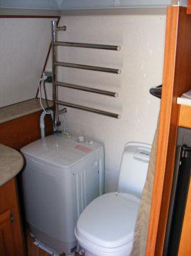 Our big old 1999 21'6" Jayco has that sort of layout, not common for its time & we are still as much in love with it as when we got it. She who must be obeyed is pressuring me to install a washing machine .. but I resist. May not be able to show her your pic or your washer is the first thing that she will spot. (In case I relent, what sort is is & does it perform well?)