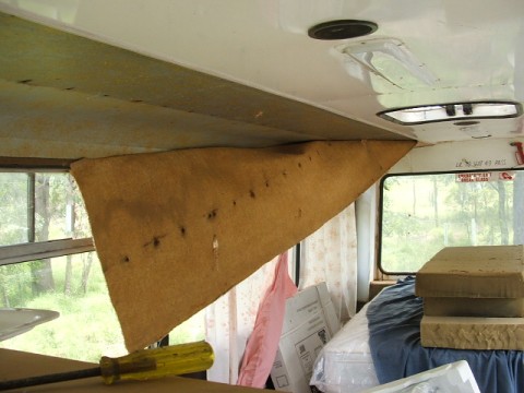 Luggage racks are out, lots of goodies I can reuse in them, both floor heaters out, the wiring will be for the pumps on the water tanks, pulled a little of the internal wall away and round its all insulated so that can wait for the windows to come out after the wet has finished, so now will tackle the internal roof, trouble is I have heard horror storys of how to remove the carpet that is glued above where the racks were, Any suggestions, is there a chemist in the house, is there a compound that will dissolve the glue so that it could be "peeled" of