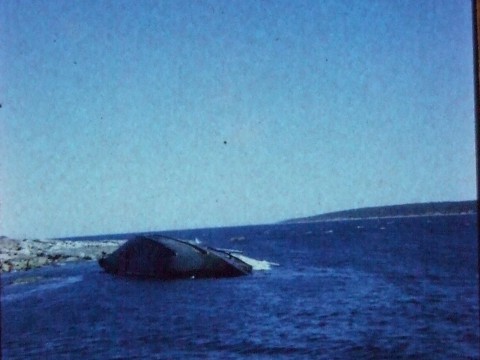 The wreck was the Deigi a tuna poler, they werent looking obviously coming out of Lincoln & drove it up on top of the rock, another tuna boat tryed to pull it free & it tiped over & sank. Took photos on way out to pots. Photo quality not real good they are 1975 slides & deteriated a bit. Daryl