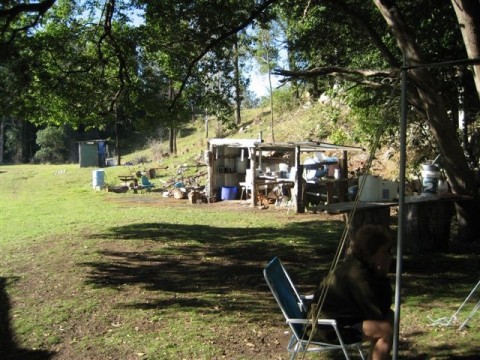 This is a camping spot we set up on my brother in laws farm in the Fassifern valley, we have a wood stove porta potti toilet and hot shower. - great winter camp, a little too hot in mid summer tho.