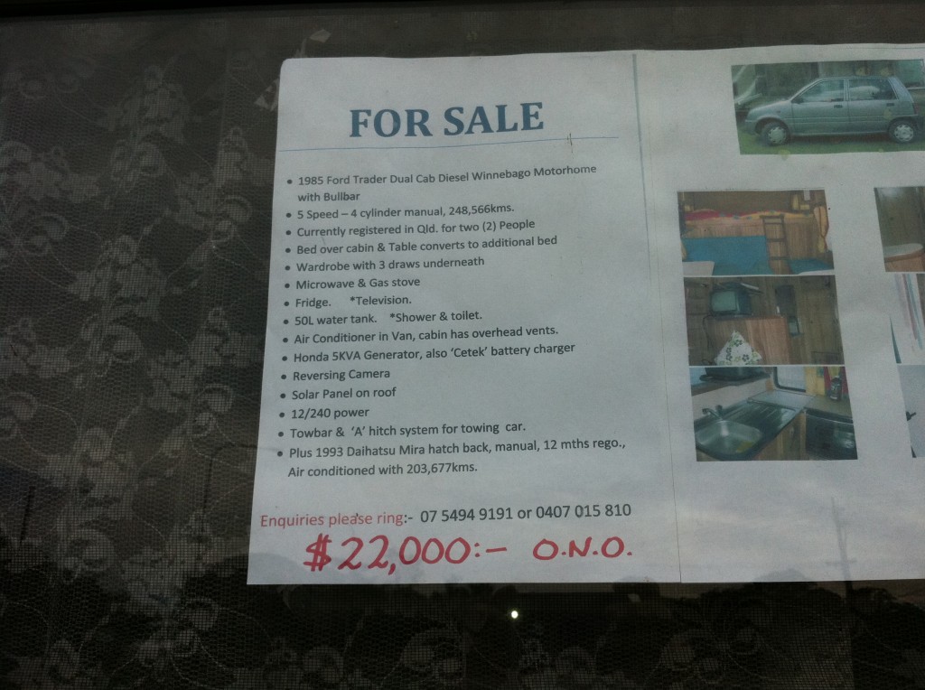 before i went to bangkok we saw this camper in the park at landsborough for sale it was 22,000 comes with double cab 1985 ford trader camper has 12 volt and 240 shower toilet, kitchen has big fridge ,oven microwave, stereo 12 /240volt tv