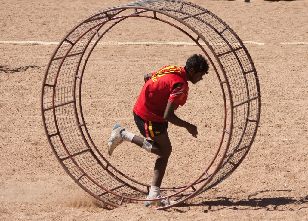 Local having a go at the wheel