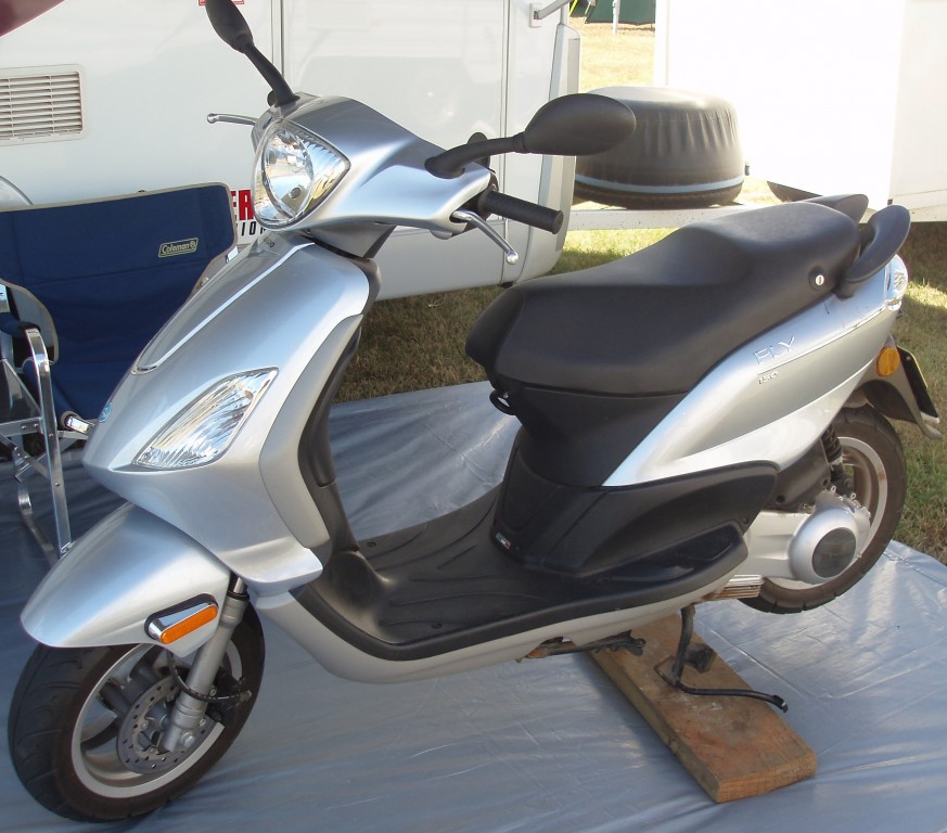 I initially transported the scooter in the back of the MH .. but once I chose to carry spare fuel and water, I decided to get a trailer made which now also carries the scooter.