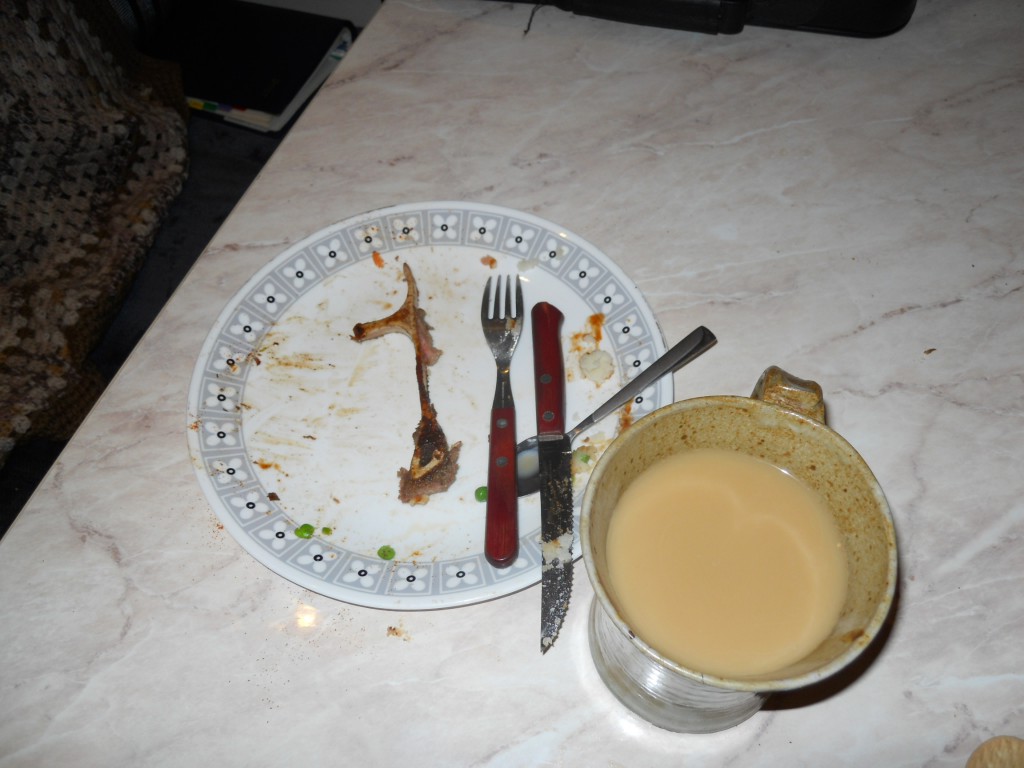 Who said you couldn't cook Bill?????? Looks pretty good to me!! Chicken schnitzel, mustard gravy, roast spuds and beans!! Yum! Semms like you enjoyed your dinner as well. Hope that wasn't yor speed at that spot??
