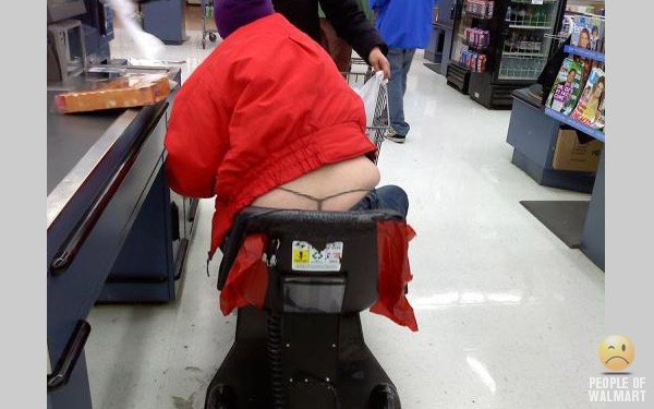 It seems Walmart should employ fashion police as an essential service, to save the NORMAL customers from sights such as these. I had a personal experience today with a young mum wearing jeans which didn't come near to covering the plumber's crack. It didn't matter how much she pulled that T shirt down, the exposure remained exposed. Lucky I'd eaten lunch some time before.