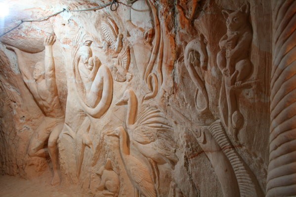 Walk among 14 years of one mans passion, Dinosaurs, 10ft high Budda, Angels, Jungle Cats,Super hero's & Egyptian Chambers. 500+ carvings in sandstone in an old opal mine. The best $25 you can spend in town.