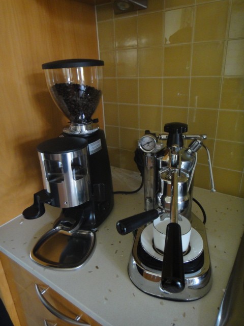 We use a Breville espresso machine at the moment, which I have found is probably no better or worse than any of the 5 or so $200 to $700 machines we have tried so far. As far as beans are concerned we generally pick up either Harris or Vittoria whole beans (usually the darker roasts) and grind them in a burr grinder in lots big enough for a couple of days at a time. On the road we tend to stick to tea and if instant coffee is used, it's got to have rum or bourbon in it. Why use instant coffee at all? because rum or bourbon tastes weird in tea... and a camper trailer doesn't have enough room for coffee machines, except for a firetop percolator that is. Another thing we have tried is to grind half a small dried chilli with the beans (enough beans to fill a double handful) If you are chilli addicts like us, you might enjoy it.