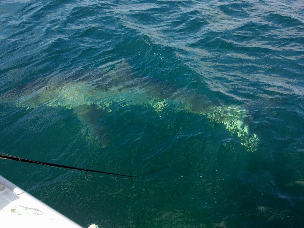 After much thrashing about the shark's head got jammed under the seat, the lady had lost most of her skin and the skipper was heading to shore at top speed.
