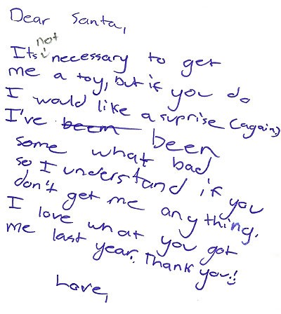 Talking about letters to Santa, here are some real ones from kids, thought they might put a smile on your face