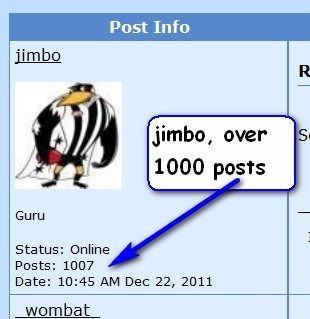 That's ok jimbo, btw congratulations you have just gone over the 1000 mark