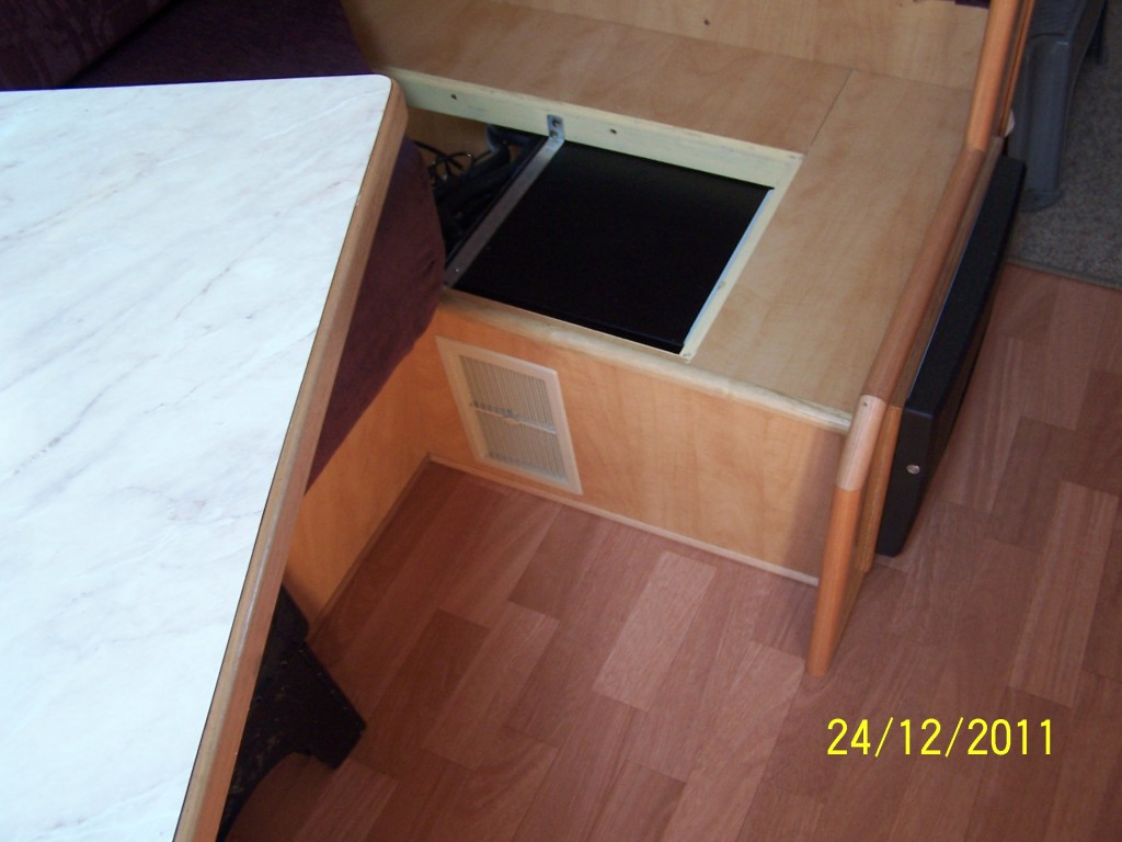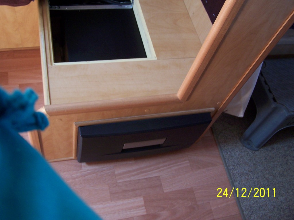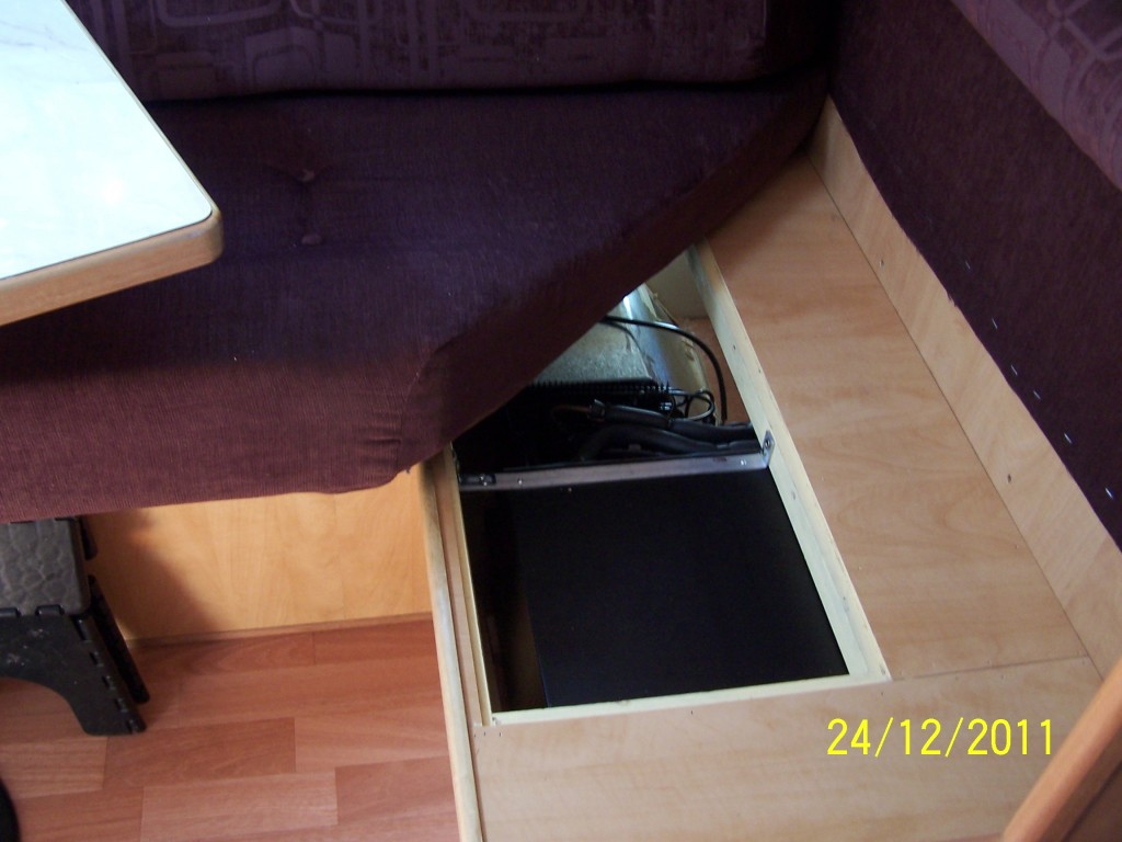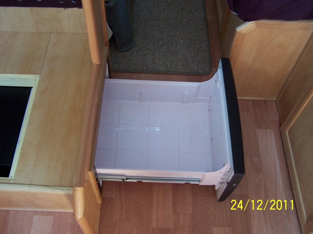 Here are the promised photos of our Dometic/Waeco Drawer Fridge which we've installed into the caravan.