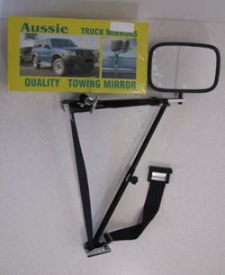 I use the strap on bar type of towing mirrors. I set up a brace with cable ties to hold the mirror in place and another tie from those straps to the mirror straps to stop it flopping back against the door EVERY time a truck goes past in the opposite direction. The off-side, passenger mirror isn't a problem, but I also secured it just in case. My strapping/cable tie set up worked all around Oz very successfully. I used the long, strong sturdy cable ties. Trimmed the daggy ends off to make it neat.