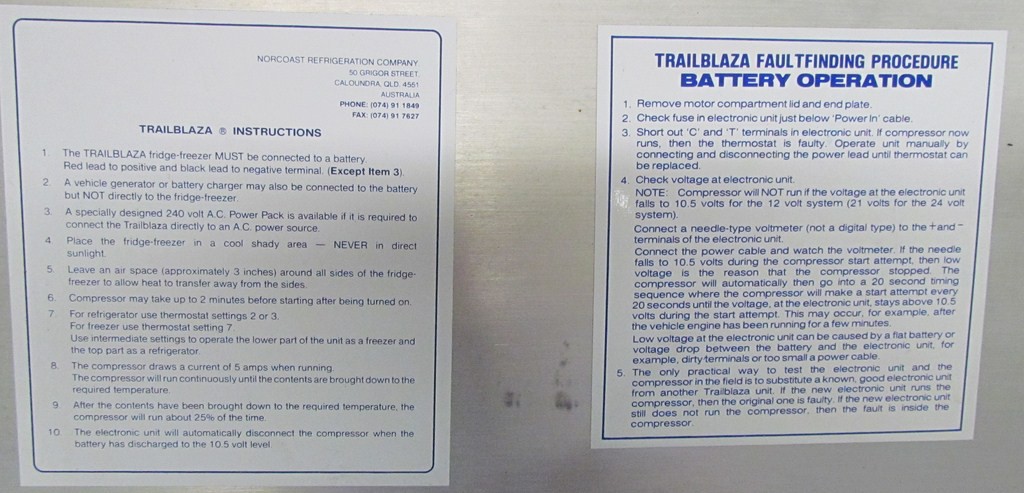 The second one 80ltr was aquired a few years later & is fitted into our camper trailer & runs as a fridge. 1x135 watt solar does the job here ok.