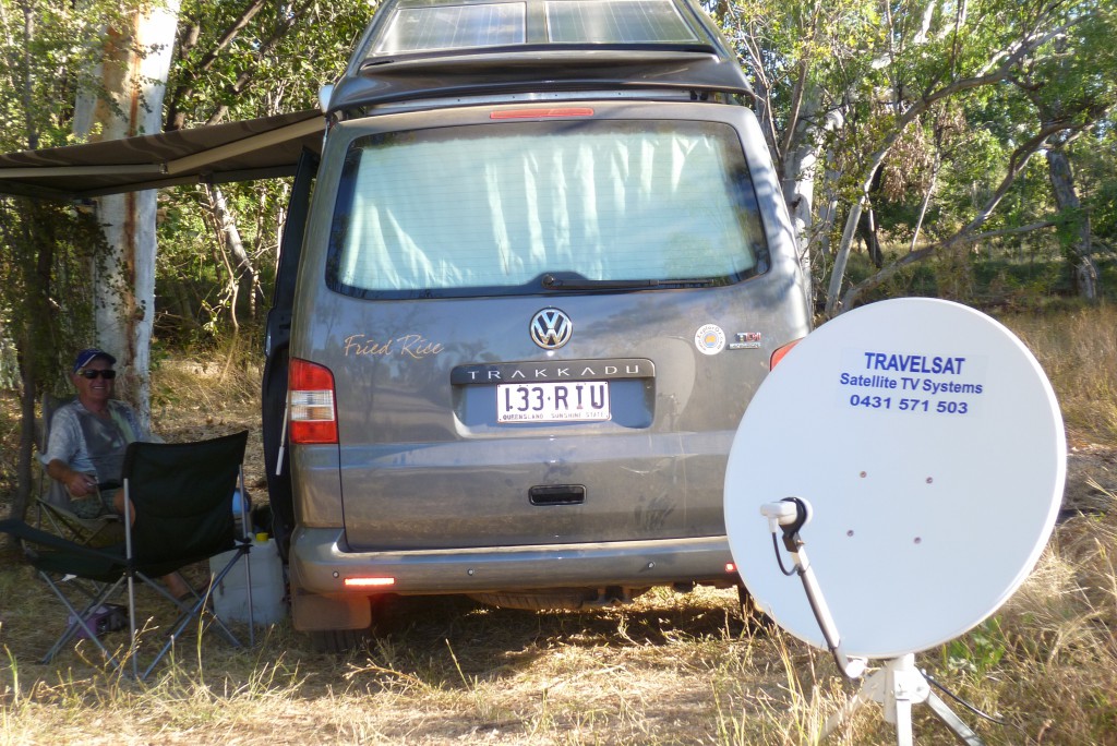 God day Doug, thanks for your response. We're very pleased with our little VW cabin. Served us well for recent 25K trip around Oz including some fairly rough stuff here and there plus lots of water crossings. Most folk were intrigued to find we two are still talking after 7 months of that confined space! We bought the dish at Karumba after a deal of frustration in isolated spaces without reception.. it is a boon; we can only play so much rummy etc .