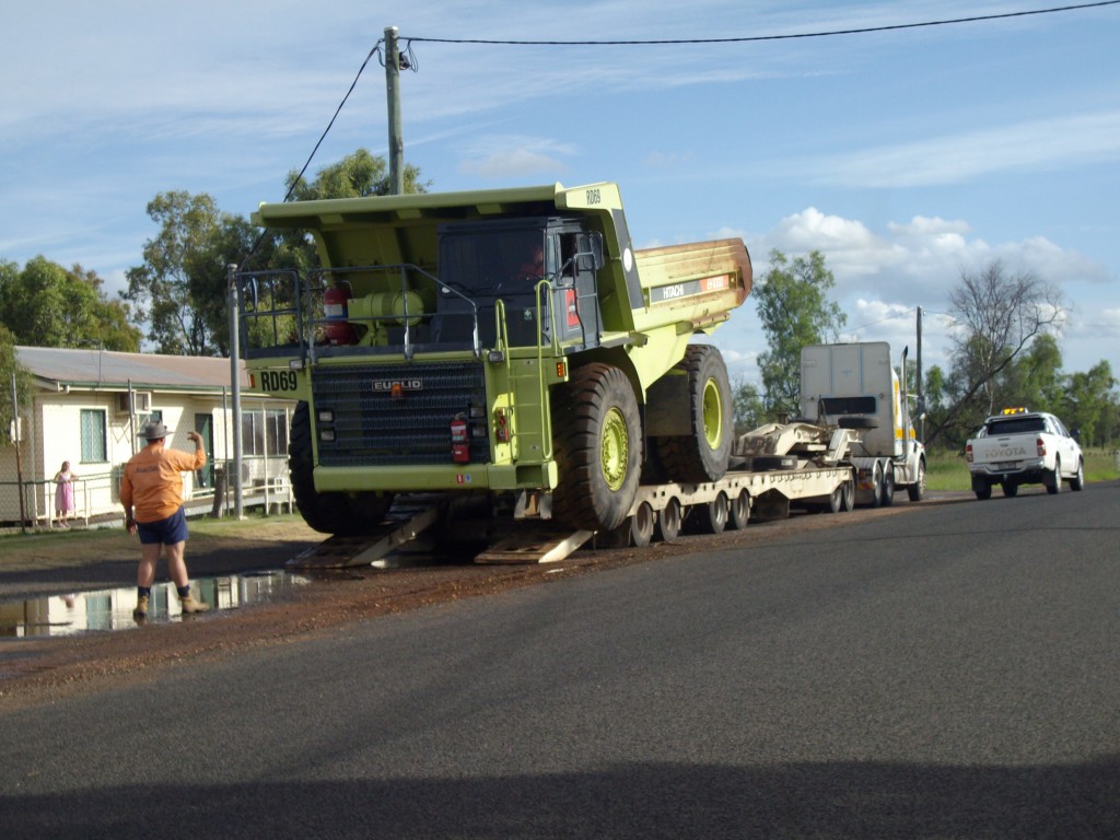 The load I took to Emerald at Christmas was that width, but cut in half for transportation. It was only 4.1 metres, gross weight about 80 tonns. That was just the dump tray, not the truck/chassis and wheels part.
