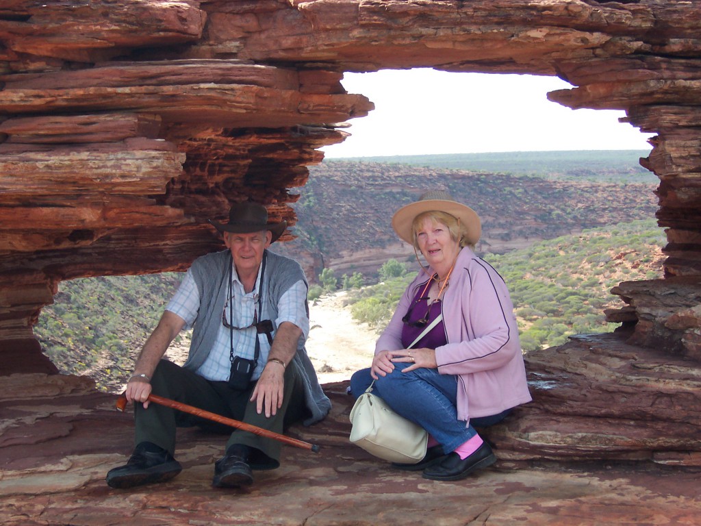 Here is a genuine photo of myself and wife Irona atNatures Window in the Kalbarri National Park.