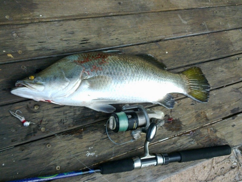 And I got a nice Barra this morning, down at the local boat ramp. Here it is.Got to do sometime with my time, and I get paid to take people fishing.Lifes hard, but someone has to do it.Bill