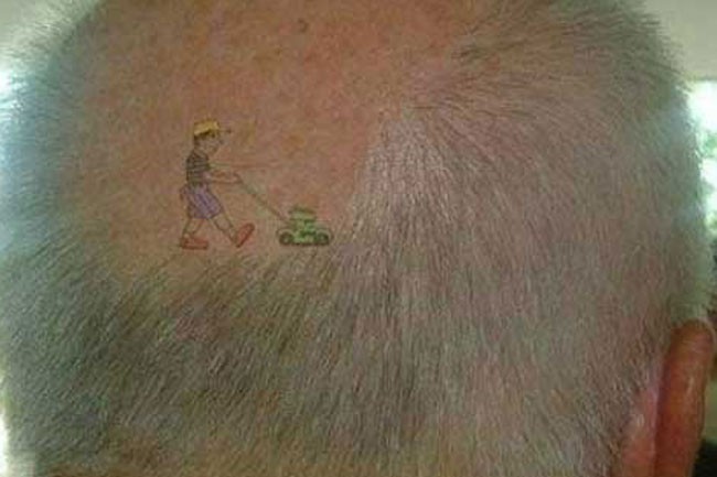 with a head that size he should have had a ride on mower