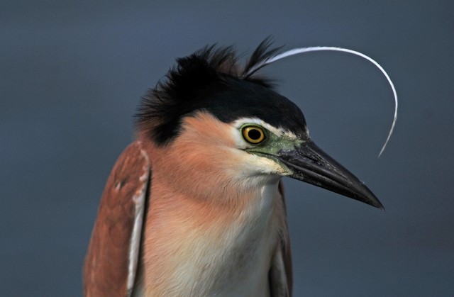 A Nankeen Night Heron is breeding plumage on a windy day. He looks mortified. Taken at Port Fairy Vic.