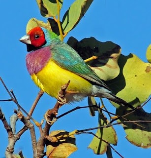 This Gouldian Finch was catching the warmth of the morning sun after a chilly night near Timber Creek